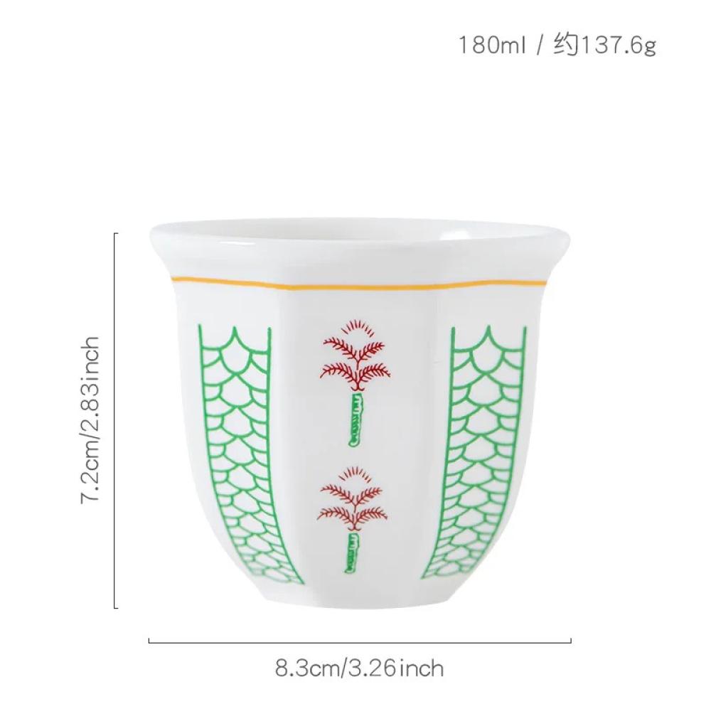 - مزيج الألوان الأحمر والتركواز يمنح الفنجان مظهرًا ملفتًا وفريدًا
